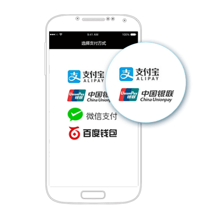 龙采支付,为iOS/Android原生/H5 App提供支付解决方案:支持微信支付、支付宝支付、银联手机支付、百度钱包等。